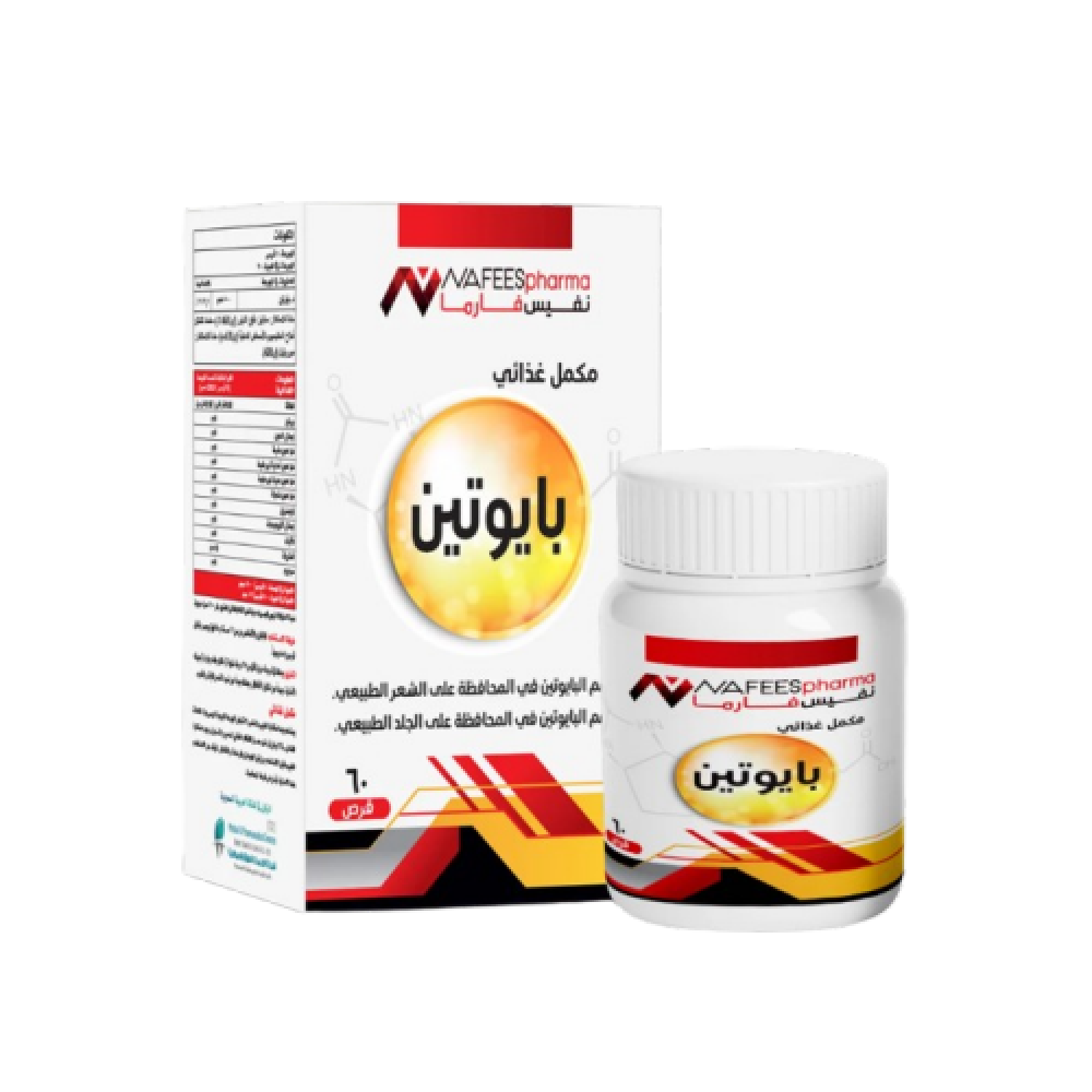 أقراص نفيس فارما البيوتين بتركيز 1000 ميكروغرام هي مكمل غذائي مصمم لدعم صحة الشعر، البشرة، والأظافر، بالإضافة إلى تعزيز عملية التمثيل الغذائي للطاقة. يحتوي هذا المنتج على البيوتين (فيتامين ب7)، وهو فيتامين قابل للذوبان في الماء يلعب دورًا أساسيًا في تحسين قوة الأظافر، نمو الشعر، وصحة البشرة. يتميز بحجم قرص مناسب وسهل البلع، مما يجعله خيارًا مثاليًا للأفراد الذين يسعون لتحسين مظهرهم الخارجي ودعم صحتهم العامة.