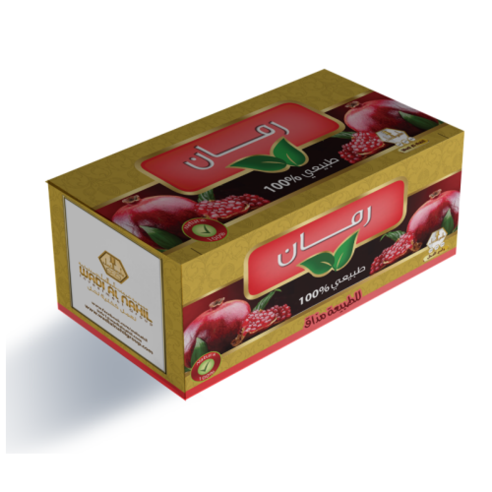 - نوع المنتج: شاي عشبي بنكهة الرمان.