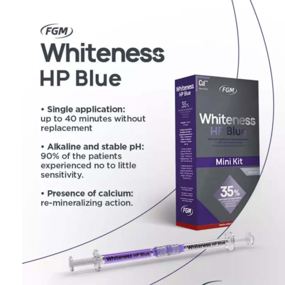 حقق تبييضًا احترافيًا للأسنان مع FGM Whiteness HP Blue 35 Kit. تسوق الآن من متجر Qeyam.sa واحصل على أفضل منتجات طب الأسنان بأسعار تنافسية مع توصيل سريع إلى باب عيادتك